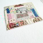 This is an original handmade textile piece, created with collaged antique fragments, with hand stitching and embroidery.