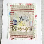 Fabric backing. Tacked to a piece of A5 handmade card.