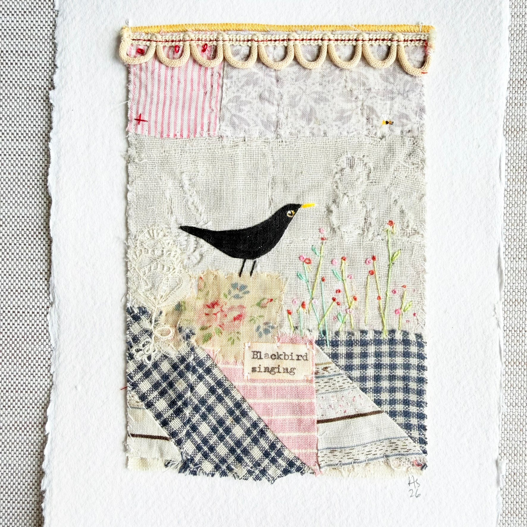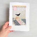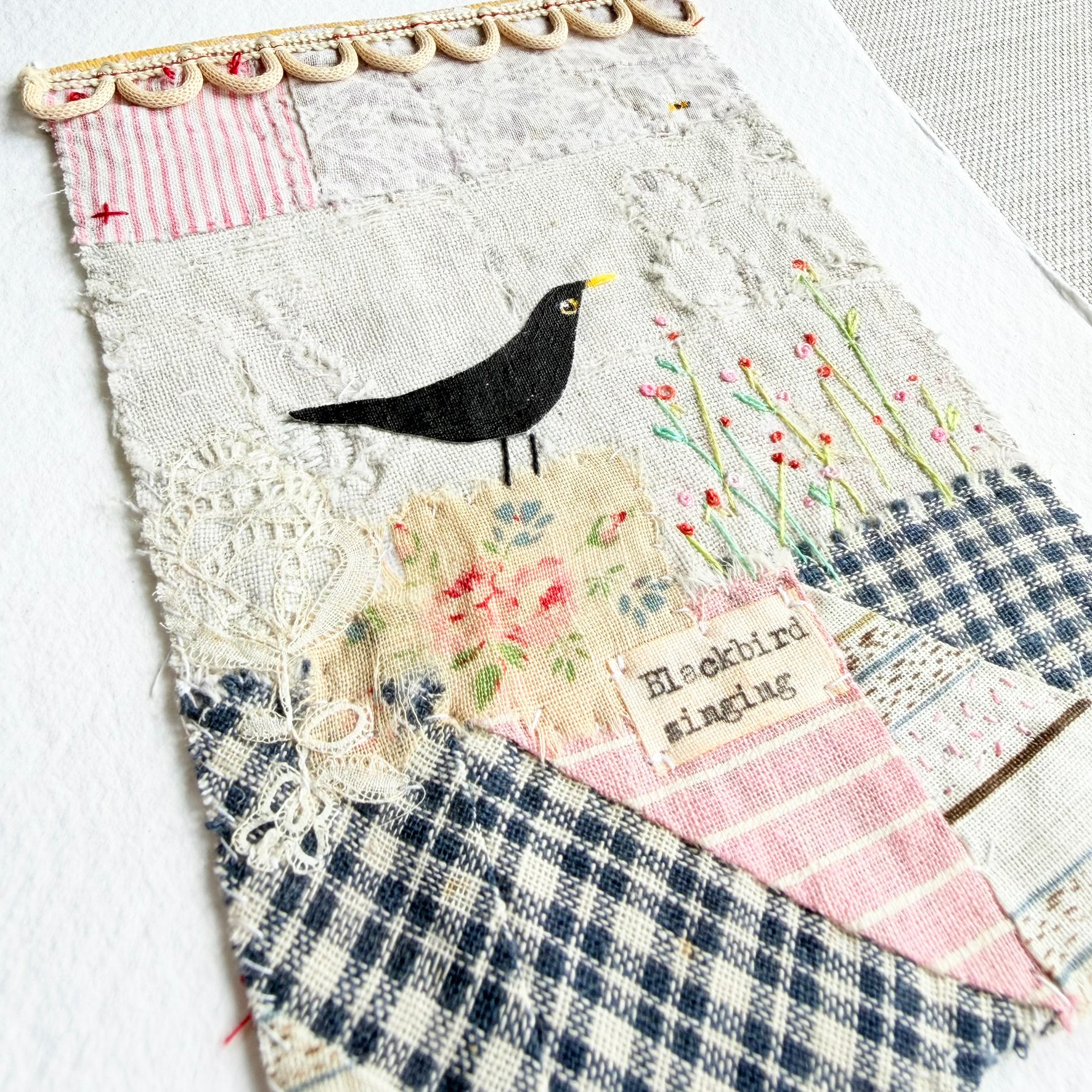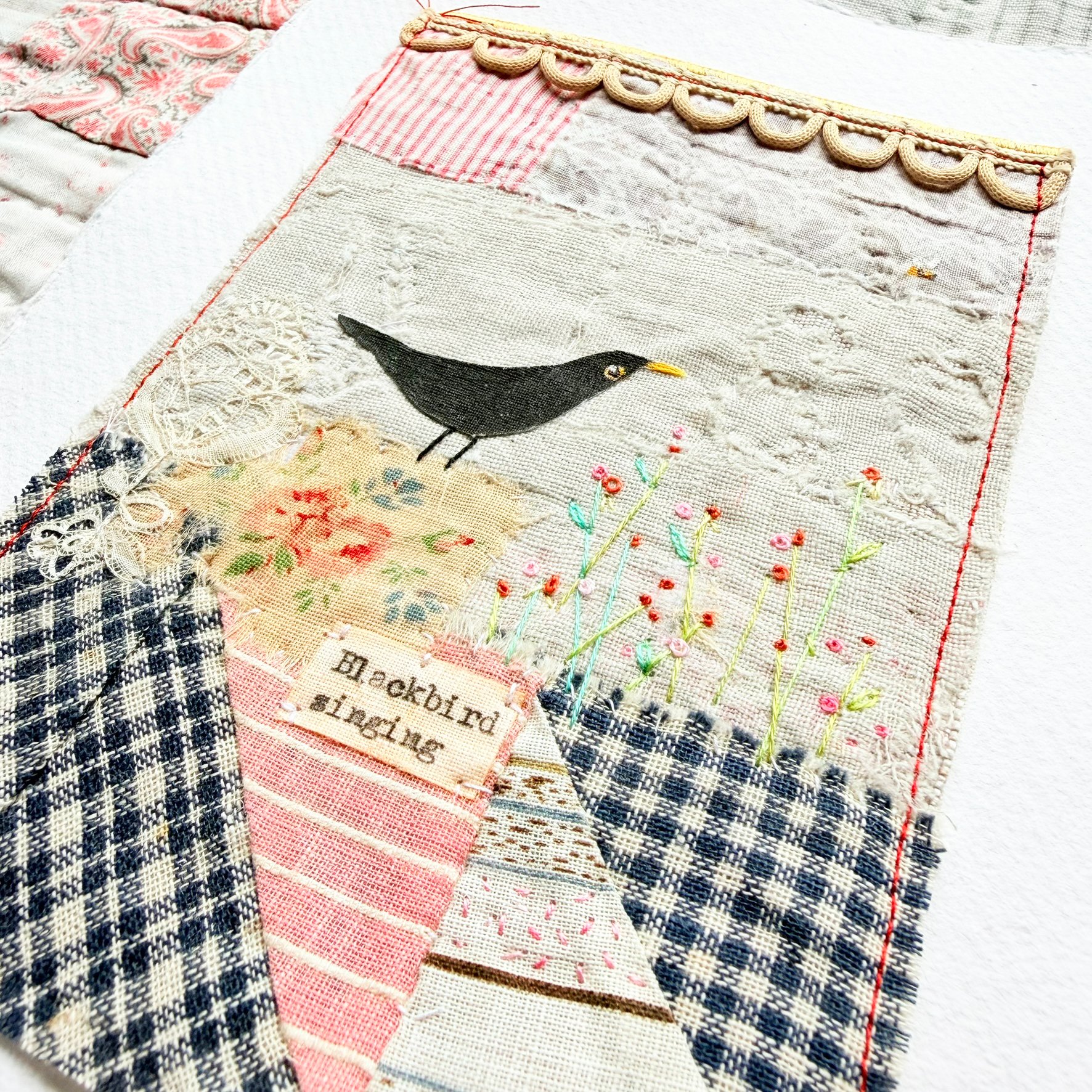 Artwork - ORIGINAL - Blackbird singing - textile hand stitched collage