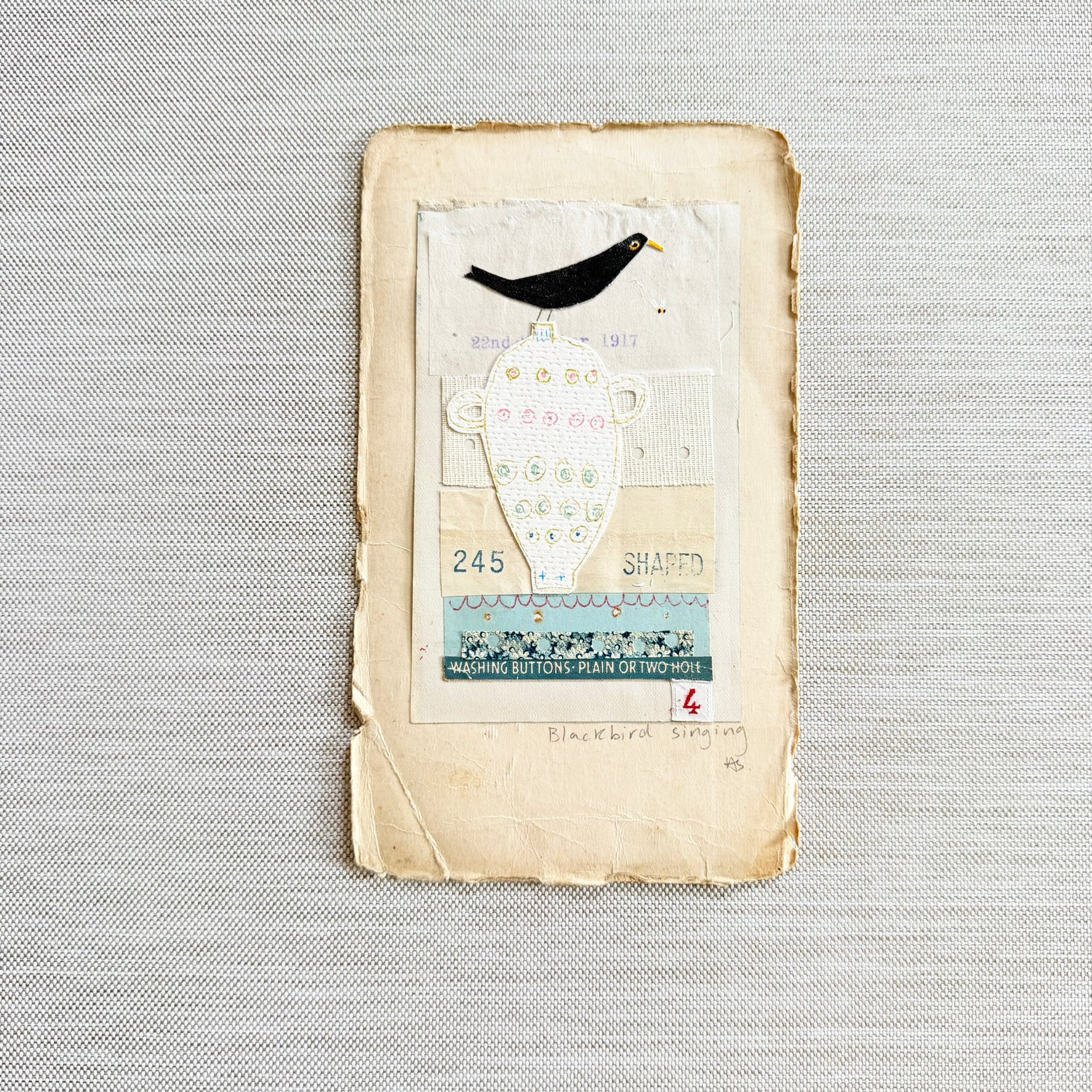 Mixed media artwork vintage ephemera - ORIGINAL - Blackbird singing