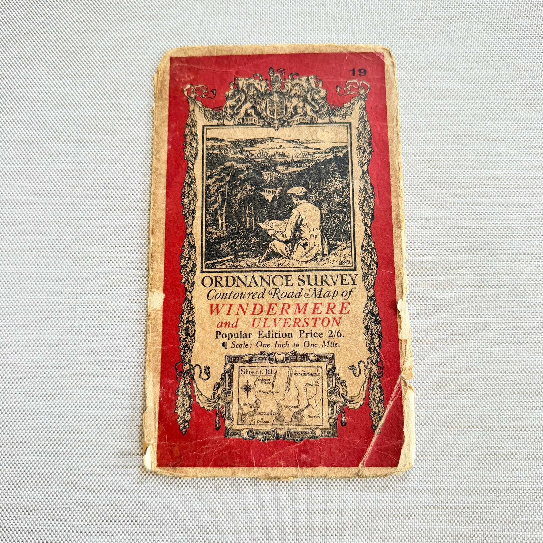 Adhered to the front cover of a very old map.